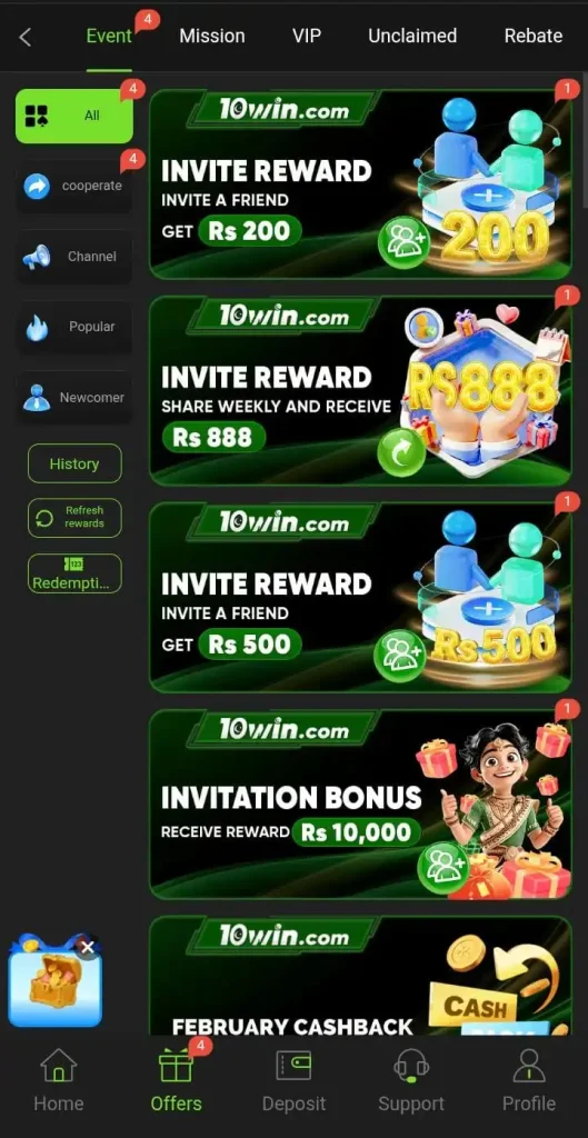 The unique factor of 10Win Game APK is its reward system. Players not only enjoy entertainment but can also withdraw real cash directly to their wallets, making it more than just a gaming app – it’s also an earning platform.